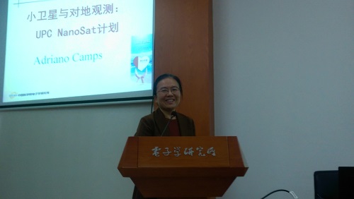 报告中,Adriano Camps教授详细介绍了小/微型卫星的技术及应用、利用小卫星进行对地观测的技术手段和发展趋势、以及加泰罗尼亚工业大学的小卫星计划。Adriano Camps教授的报告持续了100分钟,内容丰富、翔实。报告后Adriano Camps教授回答了大家的一些问题。