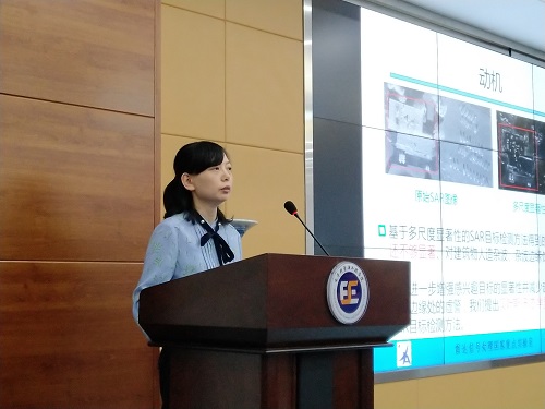 南航时晨光博士在做学术报告“组网雷达系统射频隐身技术研究”