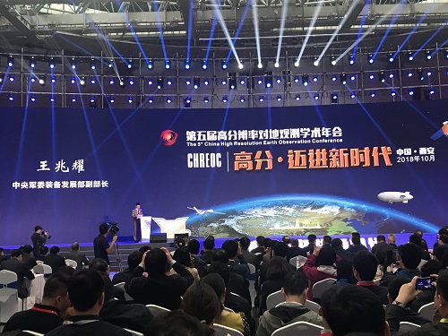 2018年10月17-18日以“高分•迈进新时代”为主题的第五届高分辨率对地观测学术年会在西安电子科技大学隆重举行。年会在高分辨率对地观测系统重大专项管理办公室、教育部科技司、中国科学院重大科技任务局、中国航天科技集团有限公司、中国航天科工集团有限公司、中共陕西省委军民融合发展委员会办公室指导下,由高分辨率对地观测学术联盟主办,西安电子科技大学、中科院西安光机所、中国空间技术研究院西安分院、西安市科技局、微波成像技术国家重点实验室等八家单位共同承办。来自国内外高校、科研院所、企业单位的5位院士及1200余名代表参加了本届会议。