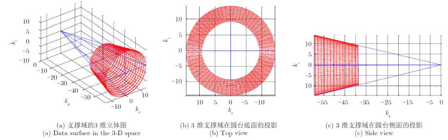 ![]() | 图 7 点目标3维频谱支撑域Fig. 7 Data surface observed in the 3-D frequency space |