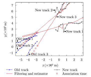 (1) 老航迹:因缺少量测数据无法进行状态更新的中断航迹。