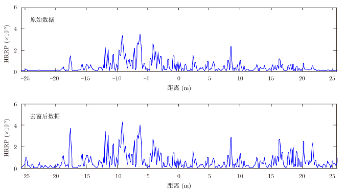 图 3 锥形窗影响去除前后得到的海面1维距离像 Fig.3 1-D range-resolved sea clutter profiles before and after removing the tapered window |