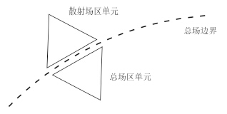 为便于说明总场边界条件的加入,图 3中以三角形代替四面体,规定散射场区单元的场均属于散射场,总场区单元的场均属于总场。在总场区内部及散射场区内部,DGTD计算方式如前文所述,需要特殊处理的是边界处相邻的单元计算式,具体来讲是在Numerical Flux表达式中增加入射波的计算部分。