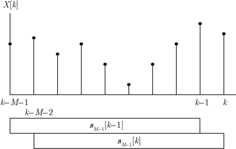 这里,sM-1[k]是s[k]的长为M-1的子窗口,即: