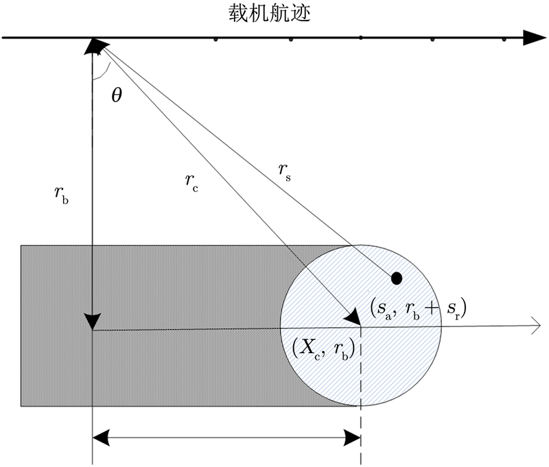 图 1为SAR几何关系示意图。在图 1中,rb为天线波束中心到地面的垂直距离;rs为平台到点目标的瞬时距离;天线的波束中心指向(Xc,rb)处;在(sa,rb+sr)处有一个点目标;飞机位置为x。当Xc=0时,是理想的正侧视条带SAR模式,雷达天线波束中心保持与飞行航迹垂直,均匀照射地面。本文主要讨论正侧视情况。