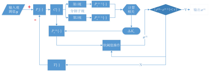 下面给出算法具体的迭代步骤。设输入为观测回波y,第$k - 1$步迭代的输出为${{x}^{(k - 1)}}$,那么本算法第$k$步迭代步骤如下:
