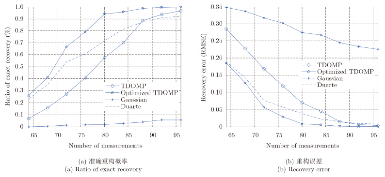 3 仿真实验本节对所提的针对TDOMP重构算法的测量矩阵优化方法进行仿真,分析测量矩阵优化前后对重构性能的影响。