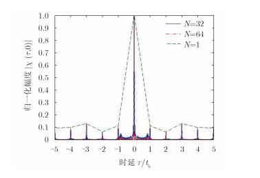 因此,整码元延迟处的旁瓣水平仅由相位编码编码序列的旁瓣水平决定,而子载频加权、子载频数仅影响码元间的旁瓣水平。