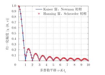 只对各子载频幅度进行加权,首先令θn=0,所用窗函数如表 1所示,并对表 1中的窗函数进行归一化处理,使得