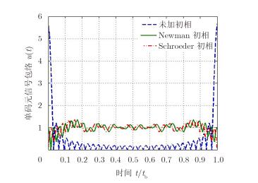 图 7 不同初相组合幅度加权单码元OFDM信号包络 Fig.7 Single bit of OFDM signal envelope for different combination of amplitude and initial phase weighting |