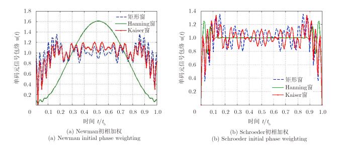 图 5 不同初相加权单码元OFDM信号包络 Fig.5 Single bit of OFDM signal envelope for different window functions |