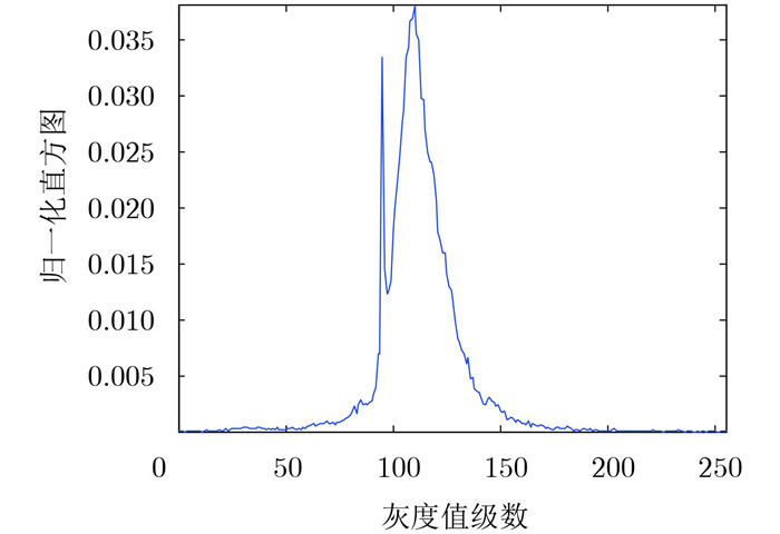 (1) 由于最佳阈值处于直方图峰值的左侧平缓区域,因此首先找到直方图的峰值所对应的灰度值Tmax,并获取峰值左侧所有灰度值对应的直方图;