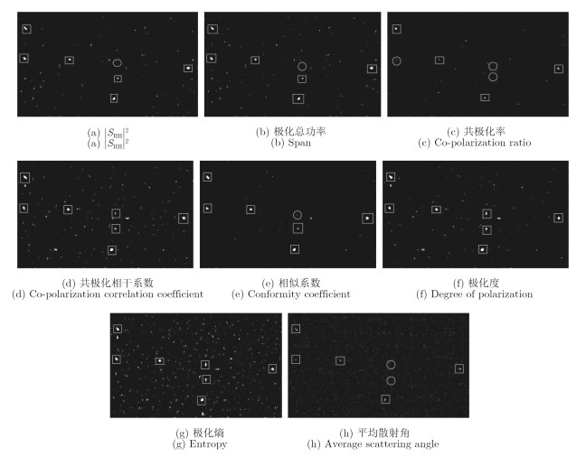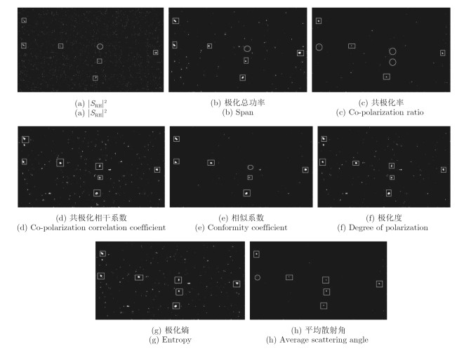 表 5 不同极化特征参数CFAR检测结果统计 Tab.5 Summary of CFAR detection results by using different polarimetric features |