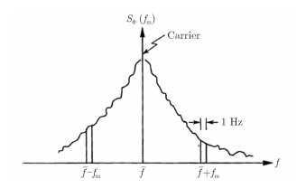 $ \begin{matrix} {{P}_{\Phi }}=\text{E}\left( {{\left| {{\phi }_{\text{n}}}\left( {{\text{t}}_{\text{m}}} \right) \right|}^{2}} \right) \\ \text{=}\text{E}\left( {{\left| {{\phi }_{\text{n}}}\left( {{\text{t}}_{\text{m}}} \right)-{{\text{t}}_{\text{m}}}\text{-}\frac{\text{2}{{\text{R}}_{\text{0}}}}{\text{c}} \right|}^{2}} \right) \\ \text{=4}\int_{\text{-}{{\text{B}}_{\text{v}}}\text{/2}}^{{{\text{B}}_{\text{v}}}\text{/2}}{{{\text{S}}_{\Phi }}\left( {{\text{f}}_{\text{m}}} \right){{\sin }^{\text{2}}}\left( \pi {{\text{f}}_{\text{m}}}\frac{\text{2}{{\text{R}}_{\text{0}}}}{\text{c}} \right)\text{d}{{\text{f}}_{\text{m}}}} \\ \end{matrix} $ | (12) |
