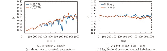 由于不需要额外的布置人造目标,基于分布式目标的定标方法[1,2,3,4,5,6]被普遍地用于估计串扰和交叉极化通道不平衡。这类定标算法一般用观测的目标协方差矩阵来估计失真参数。由于这些失真参数随距离向变化,所以实践中一般都用等斜距的像素来估计观测的目标的协方差矩阵[4, 7]。然而实际应用定标算法时,均要求所用到的分布式目标满足一定假设。简单地用同一距离门处的像素来估计观测的目标协方差矩阵难免会包含不满足假设的目标,例如地形起伏较大的地物或不含极化信息的饱和像素等。为了获得更稳定的失真参数估计,需要滤除不满足定标算法假设的目标(以下简称这种目标为离群目标)。为此,本文采用截断协方差矩阵的方法来剔除离群目标。