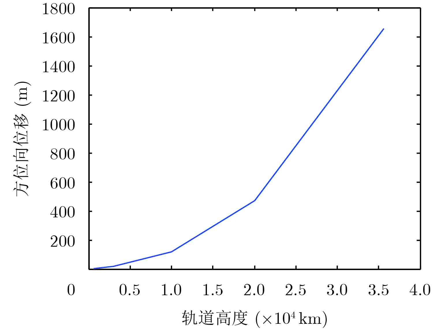 图 17 方位向位移随轨道高度的变化 Fig.17 Displacement in azimuth vs. orbit height |