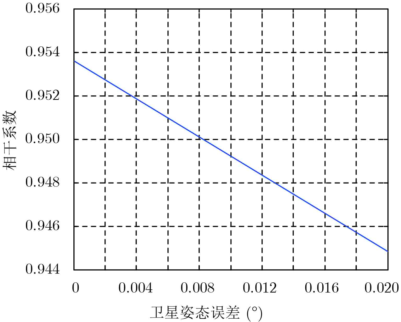 图 14 波束指向和卫星姿态对相干系数的综合影响 Fig.14 Overall influence on coherent coefficient versus beam pointing accuracy and attitude accuracy |