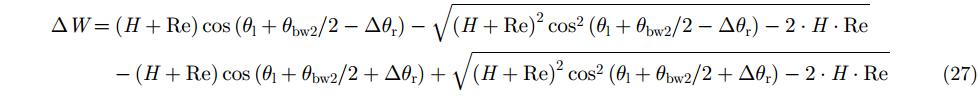 针对距离向,波束控制误差主要影响主、辅星的重叠幅宽,当主、辅星距离向同时存在相反方向的指向偏差时,距离向的重叠区域(图5和图6中黄色区域)会大幅减小,影响后续的干涉处理。根据几何模型,可以推导出覆盖区域偏差的计算公式: