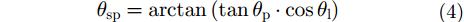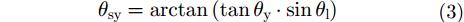 根据几何关系可以得到,偏航角和俯仰角引起的斜视角分别为: