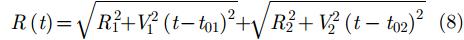 其中,R1和R2分别表示收发最近斜距,t01和t02分别表示波束中心穿越时刻,V1和V2分别表示收发卫星的速度。为简化分析,下文中,假设两星同时穿越波束中心时刻且以该时刻为方位时间零点,即t01=t02=0。