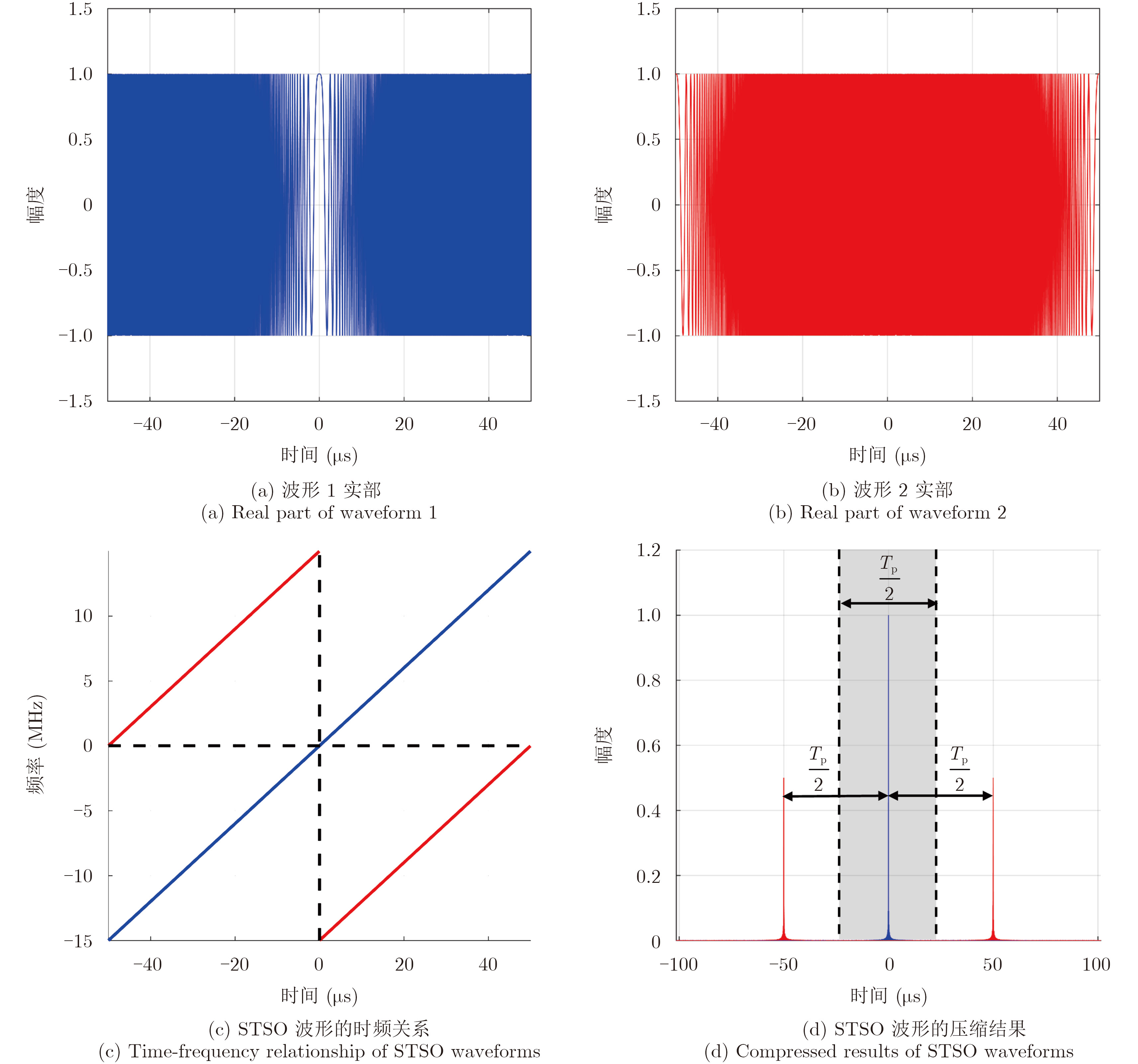 $\begin{aligned}{s_2}(t) = &{\rm rect}\left( {\frac{{t + {T_{\rm{p}}}/4}}{{{T_{\rm{p}}}/2}}} \right){\rm{exp}}({\rm j}{{π}} {k_{\rm{r}}}{(t + {T_{\rm{p}}}/2)^2})\\& + {\rm rect}\left( {\frac{{t - {T_{\rm{p}}}/4}}{{{T_{\rm{p}}}/2}}} \right){\rm{exp}}({\rm j}{{π}} {k_{\rm{r}}}{(t - {T_{\rm{p}}}/2)^2})\end{aligned}$