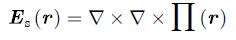 晴空尾湍流的散射主要由尾流内部介电常数的起伏所致,其特性研究通常分两类方法。一类是基于Tatarskii随机湍流介质散射的理论,代表性的研究是美国NASA的Marshall等利用TASS仿真系统计算得到了晴空中飞机尾流的体散射率等重要散射参量[26],但相关特性结果与实验数据出入较大,有待进一步改进。另一类方法是近些年更受关注的基于飞机尾流层流特性的散射激励计算方法,主要的研究机构有美国NASA、Virginia理工大学、国防科技大学、法国国家航天航空研究中心(ONERA)、法国Thales公司等。在这类方法中,飞机尾流的散射场可表示为: