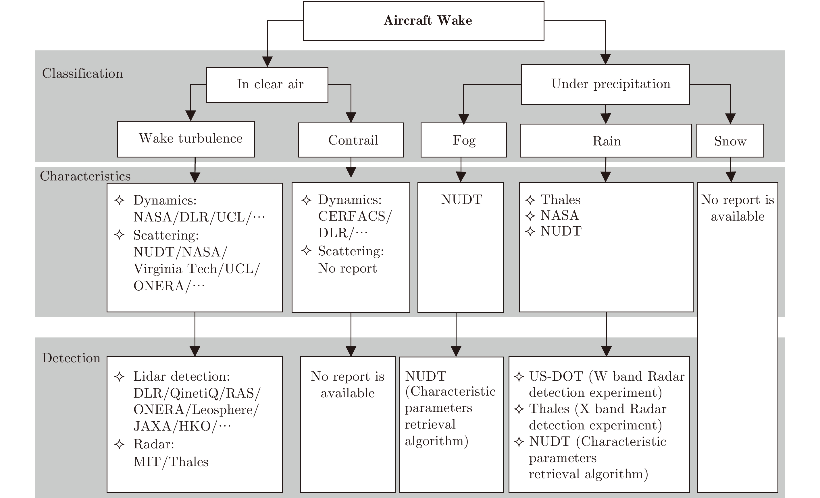 下面根据不同气象条件,从特性和探测两个层面结合各个研究团队的工作对飞机尾流的研究现状进行介绍。