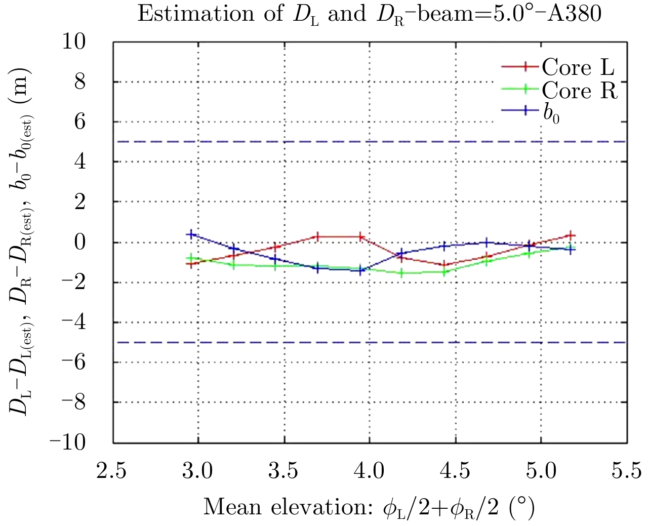 $\left. \begin{align}& \Delta {D_{\rm{L}}} = {D_{\rm{L}}} - {D_{{\rm{L}}\left( {{\rm{est}}} \right)}}\\& \Delta {D_{\rm{R}}} = {D_{\rm{R}}} - {D_{{\rm{R}}\left( {{\rm{est}}} \right)}}\\& \Delta {b_{\rm{0}}} = {b_{\rm{0}}} - {b_{\rm{0}}}_{\left( {{\rm{est}}} \right)}\end{align}\!\!\!\!\!\!\!\!\!\!\!\!\!\!\!\!\!\!\!\!\!\!\!\!\!\!\!\!\!\!\!\!\!\!\!\! \right\}$ | (7) |