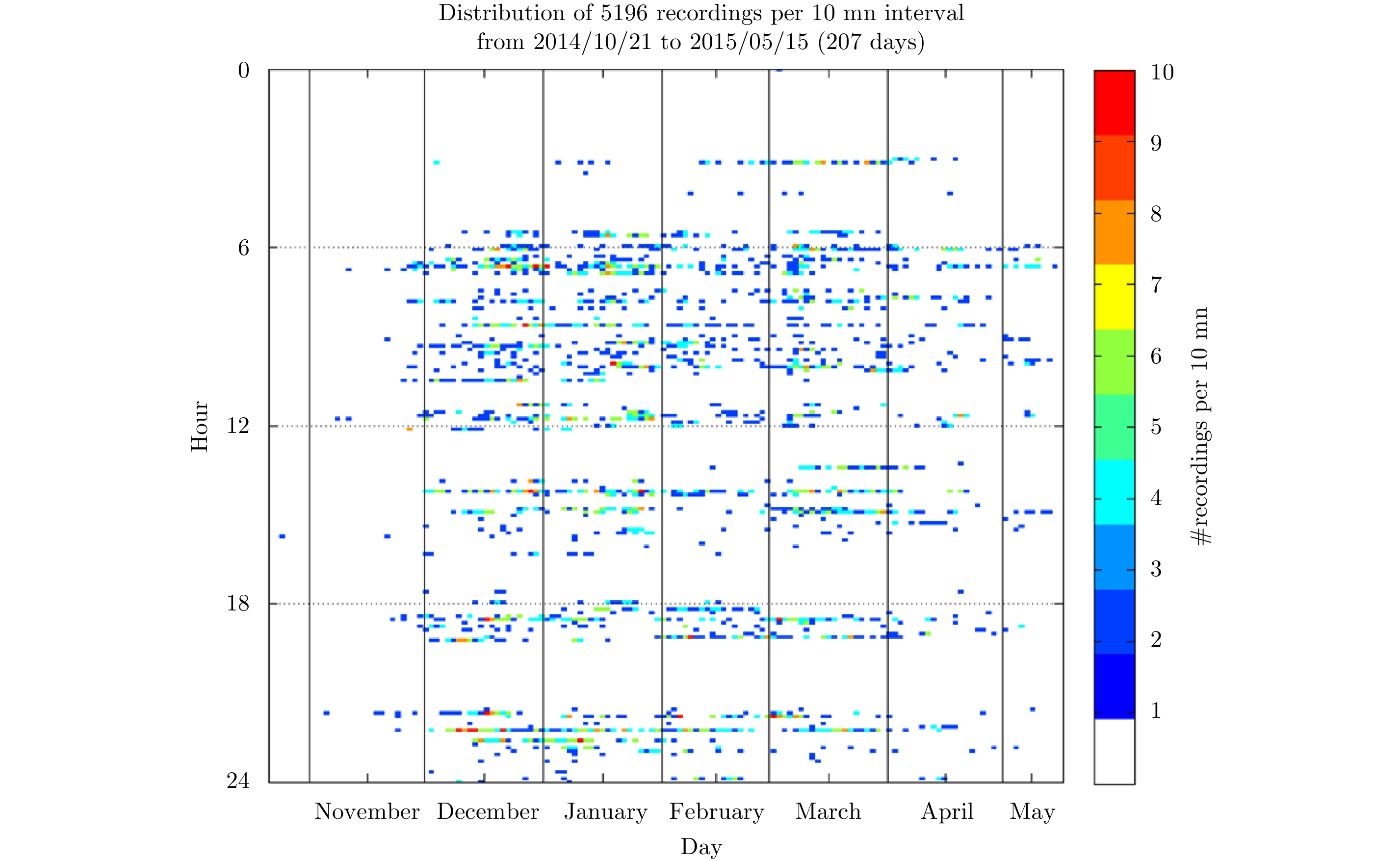 2.2 Network communication & RADAR data storageThe data collection campaign performed in PARIS-CDG was an opportunity to test tools (see Fig. 5) necessary to manage a RADAR sensor deployed on an airport in stand-alone mode for a long period (one year). A communication network, including a satellite link, was used to control remotely the RADAR sensor from THALES factory. A Local RADAR Control computer (LRC) located in THALES factory gave access to most of the parameters of the RADAR, like waveform parameters and transmit sectors. A camera system controlled the access to the RADAR area to ensure the security and the safety. The RADAR data were locally pre-processed and automatically recorded: Each time a landing aircraft crossed a pre-programmed area, the RADAR data were pre-processed and saved on a Network Attached Storage (NAS). When the RADAR was in “operational” mode, the pre-processed data were transferred to the THALES factory and processed in real time to extract the wake vortices parameters. The pre-processed data were also periodically stored on a mass storage memory to be processed off-line when tuning the wake vortices algorithms. An ADSB system is also connected to the network. It is used to record aircraft trajectories and to trig the RADAR data recorder.
