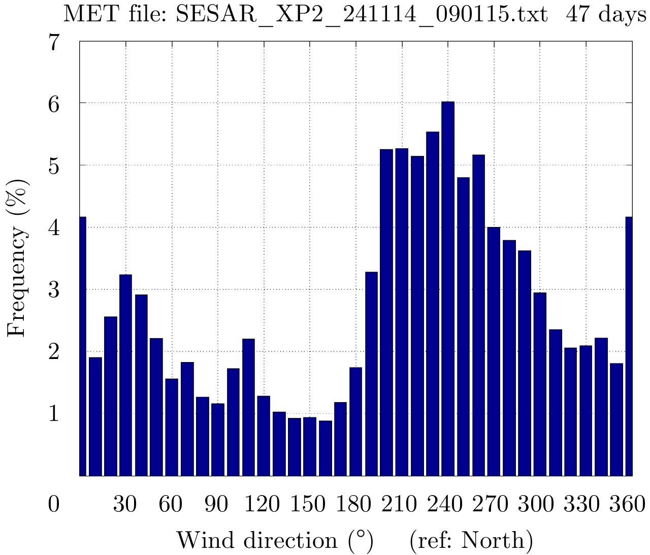 The Meteorological data are provided by METEO FRANCE. They are recorded with anemometers at position “Vent27” (see Fig. 2) close to the landing threshold 27R.