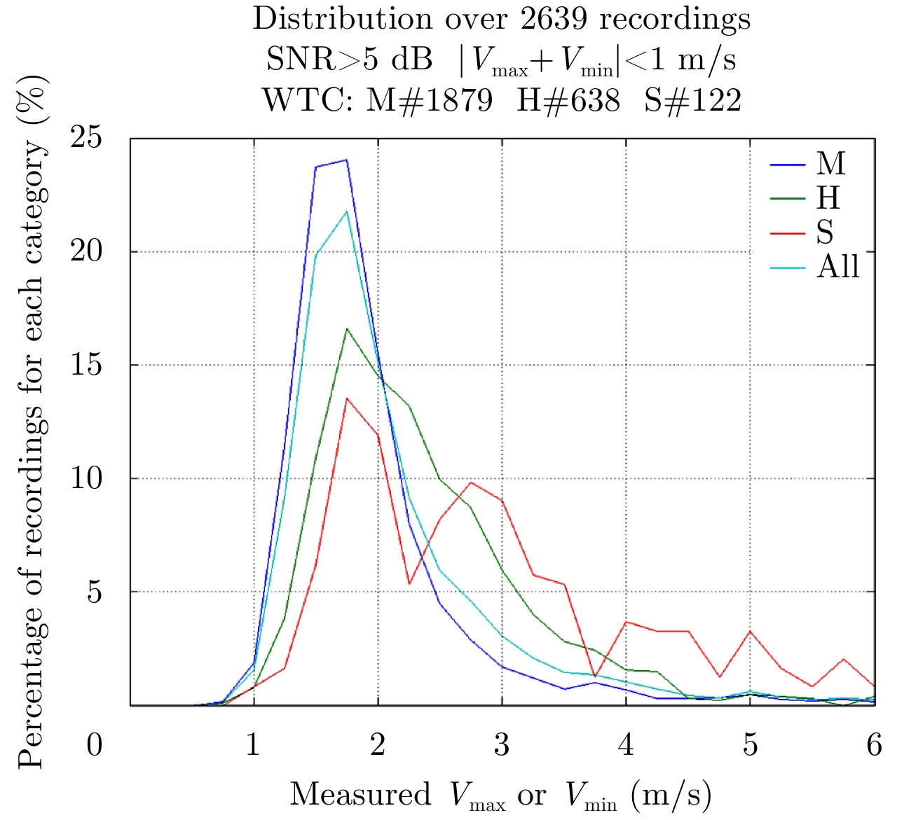Here only the recordings having a difference |Vmax+Vmin| less than 1 m/s have been considered.