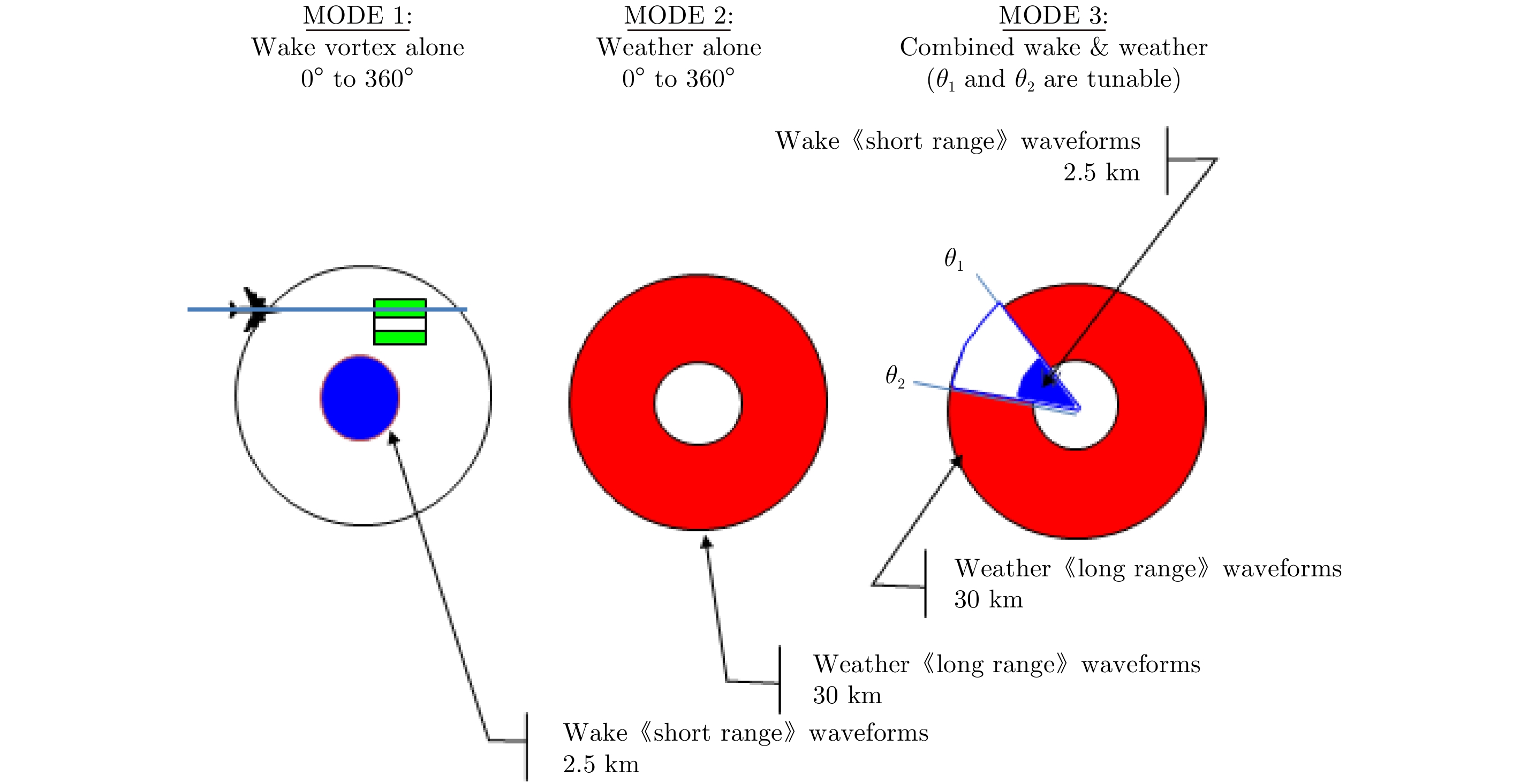 Another source of meteorological data is the X-band RADAR of THALES. The RADAR modes available during the data collection campaign are represented at Fig. 6. Most of the time, the mode 3 was used, combining wake vortices measurement and weather measurement: