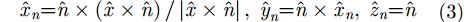 场的极化矢量和极化旋转矩阵定义依赖于一、二级面片坐标系的定义,一、二级面片坐标轴的关系如下: