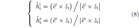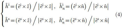 根据式(4)中对一、二级面片坐标系中极化矢量的定义,可以得出极化旋转矩阵T i, T s的表达式为: