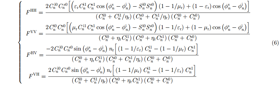 其中,T i, T s分别为入射场、散射场的极化旋转矩阵,F为散射系数矩阵,