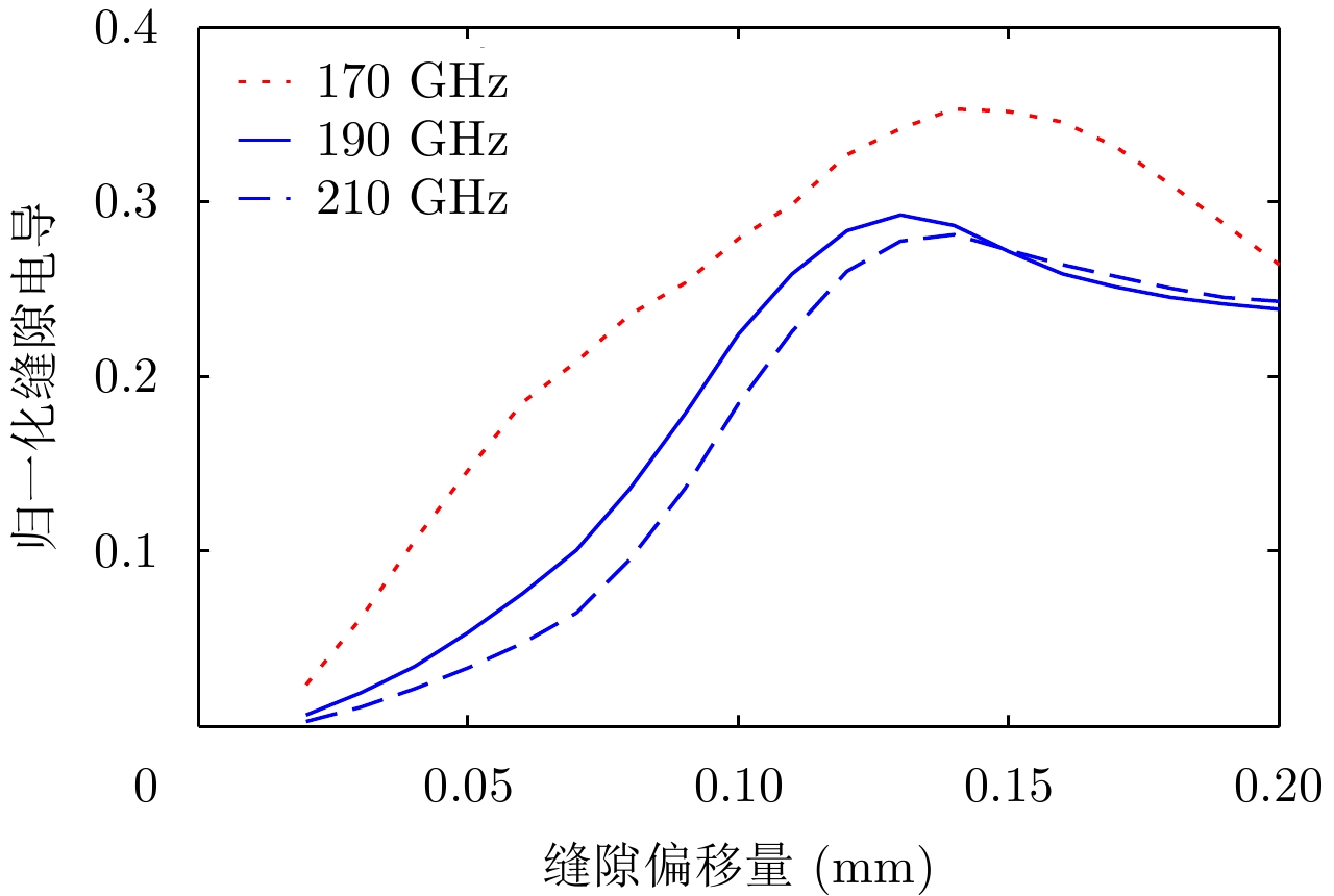 图 3 不同频率下缝隙偏移量与归一化电导对应关系 Fig.3 Relationship of the normalized admittance with slot offset for different frequencies |
