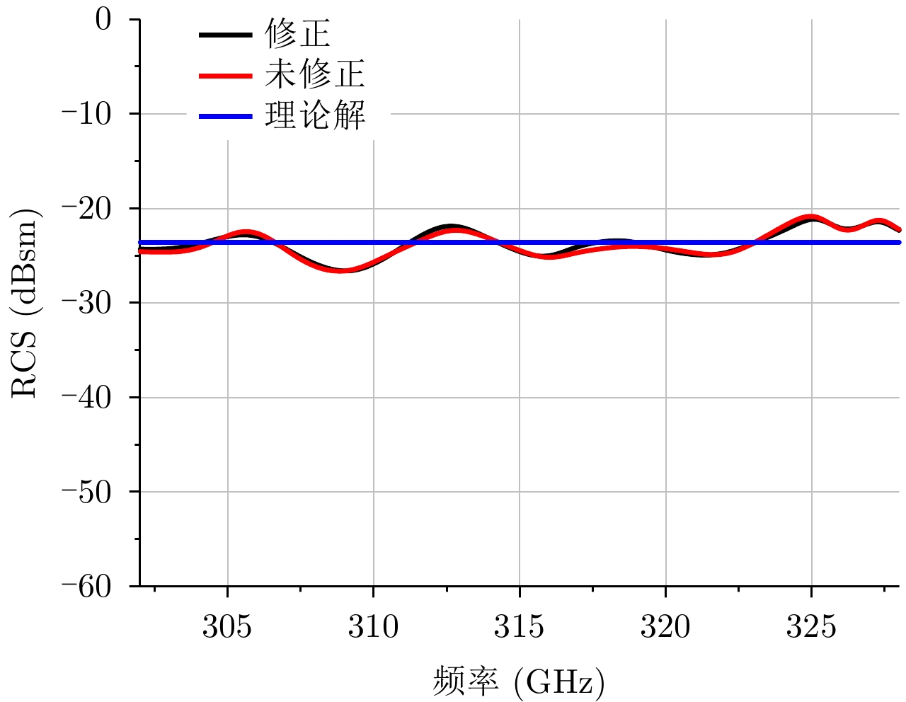 4 测量结果作为系统测量能力和测量精度的验证,我们对75 mm(直径)标准球进行了220~330 GHz频段的测量。