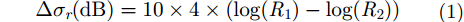 一般经背景对消后相对测量法的目标RCS计算公式[6]表示为: