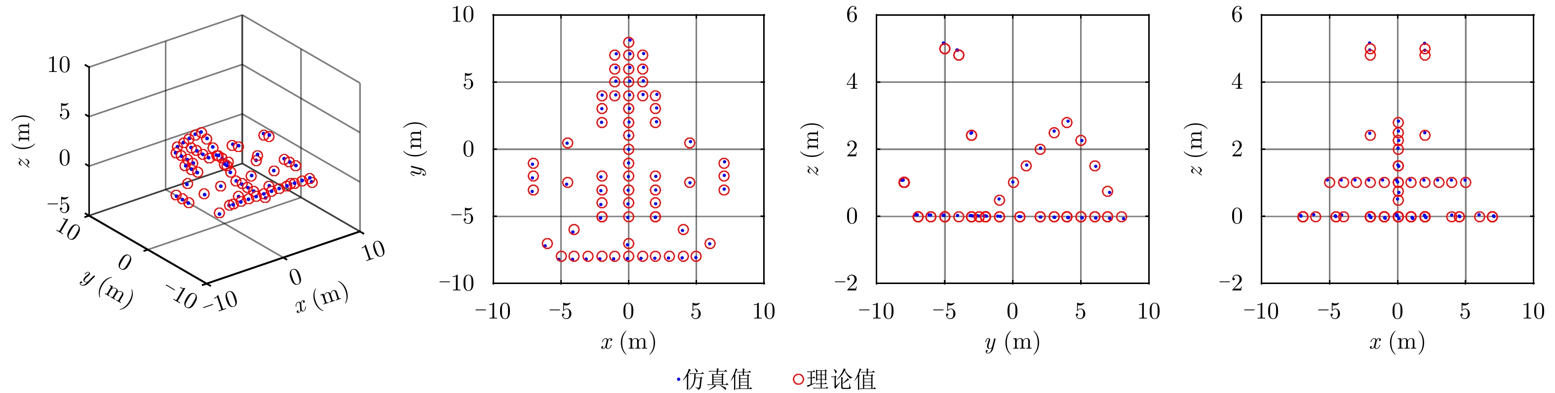 由于目前在太赫兹InISAR成像方面的研究较少,因此,将本文成像方法与传统InISAR成像方法进行对比。对于给定的同一系统,传统InISAR求得的目标坐标值满足